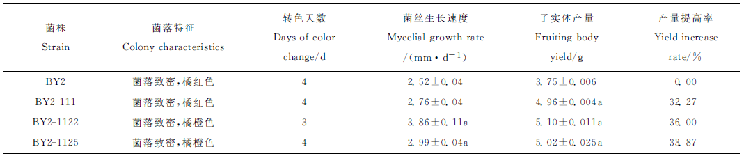 本研究以实验室保存的蛹虫草菌株(“BY2”)为出发菌株,采用60Co-γ射线与ARTP复合诱变方法对其进行处理,经过初筛、复筛及稳定性试验,研究了诱变菌株的菌落特征及子实体产量,以期获得蛹虫草高产菌种。结果表明:经复合诱变处理,筛选出3株高产突变株,其子实体产量与出发菌株相比提高率分别为32.27%、36.00%和33.87%。通过突变菌株的遗传稳定性及工厂化生产测试,BY2-1122菌株是传代稳定性较好的菌株,其子实体产量明显高于现行生产菌株,增幅达17.3%,研究表明,利用60Co-γ射线与ARTP复合诱变选育蛹虫草可以获得高产子实体菌株。