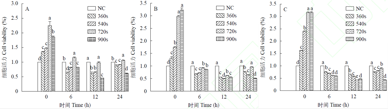 2 培养进程中不同处理组外套膜细胞的活力分析