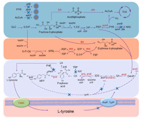 这一系列综合的工程策略显著推进了L-酪氨酸在微生物合成中的产量,为工业级生产提供了有力的实验支持。
